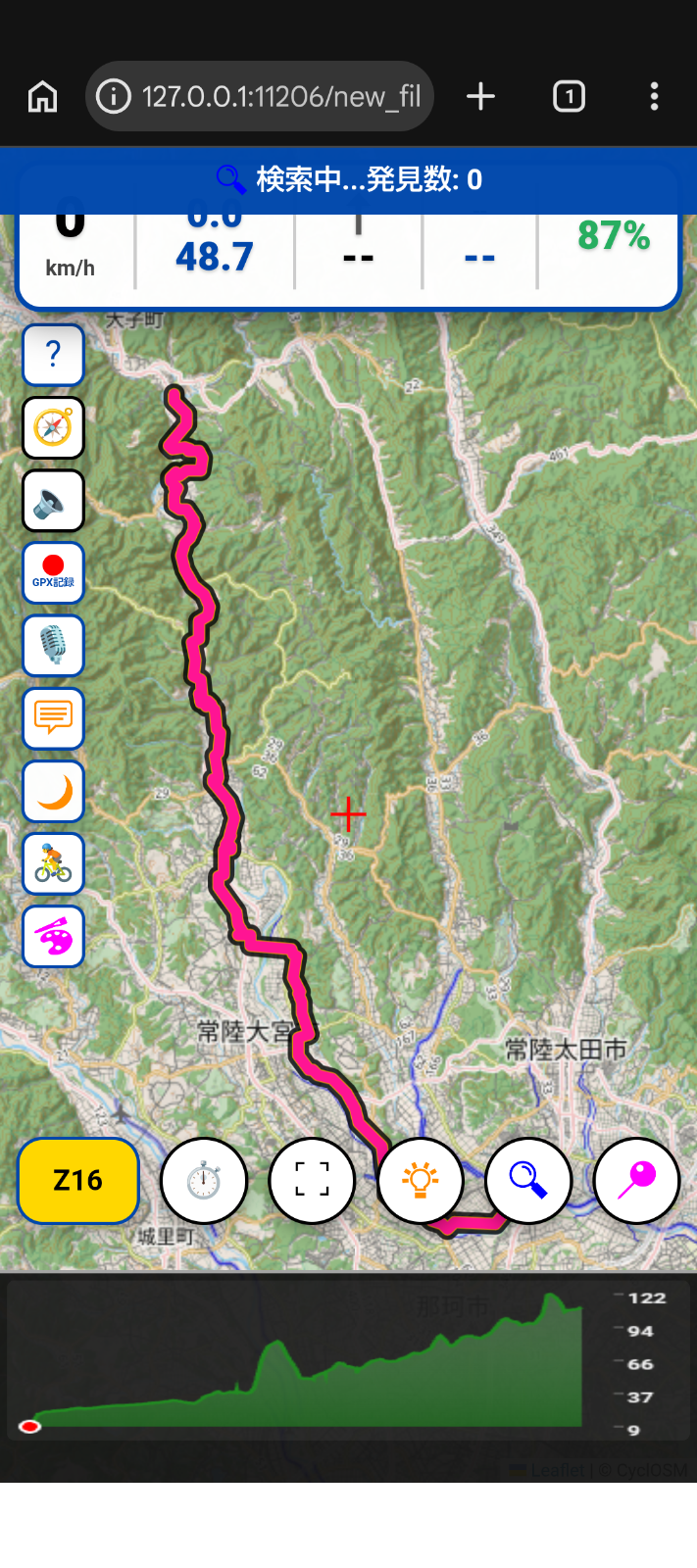 - 赤いボタン:GPXログ記録