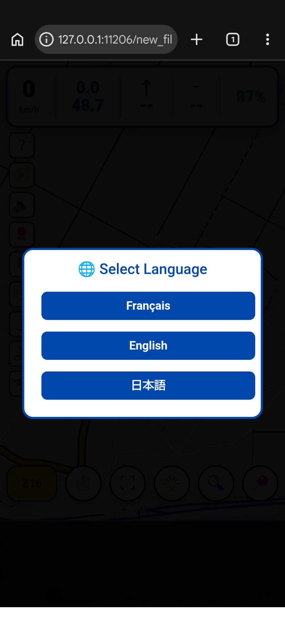👉 最初は右下の「📍」をクリックする。GPS機能がONにされて、ルートでの現在位置に画面が移動します。