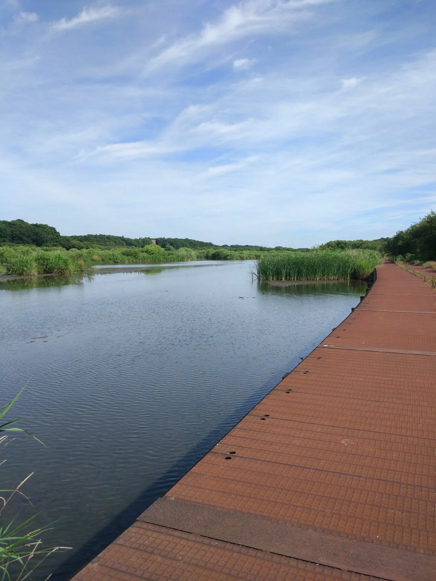 Du côté de Bandō, je suis tombé par hasard sur un marais, dans un coin aménagé sous l’appellation 菅生沼ふれいあい広場 (Sugaonuma Fureai Hiroba). Avec la chaleur de l’après-mousson, l’endroit était complètement désert. Sous nos pieds et roues, la promenade aménagée au cœur du marais était toute en acier, ça roulait donc très bien, mais les oiseaux qui auraient dû se trouver sur l’eau brillaient par leur absence.