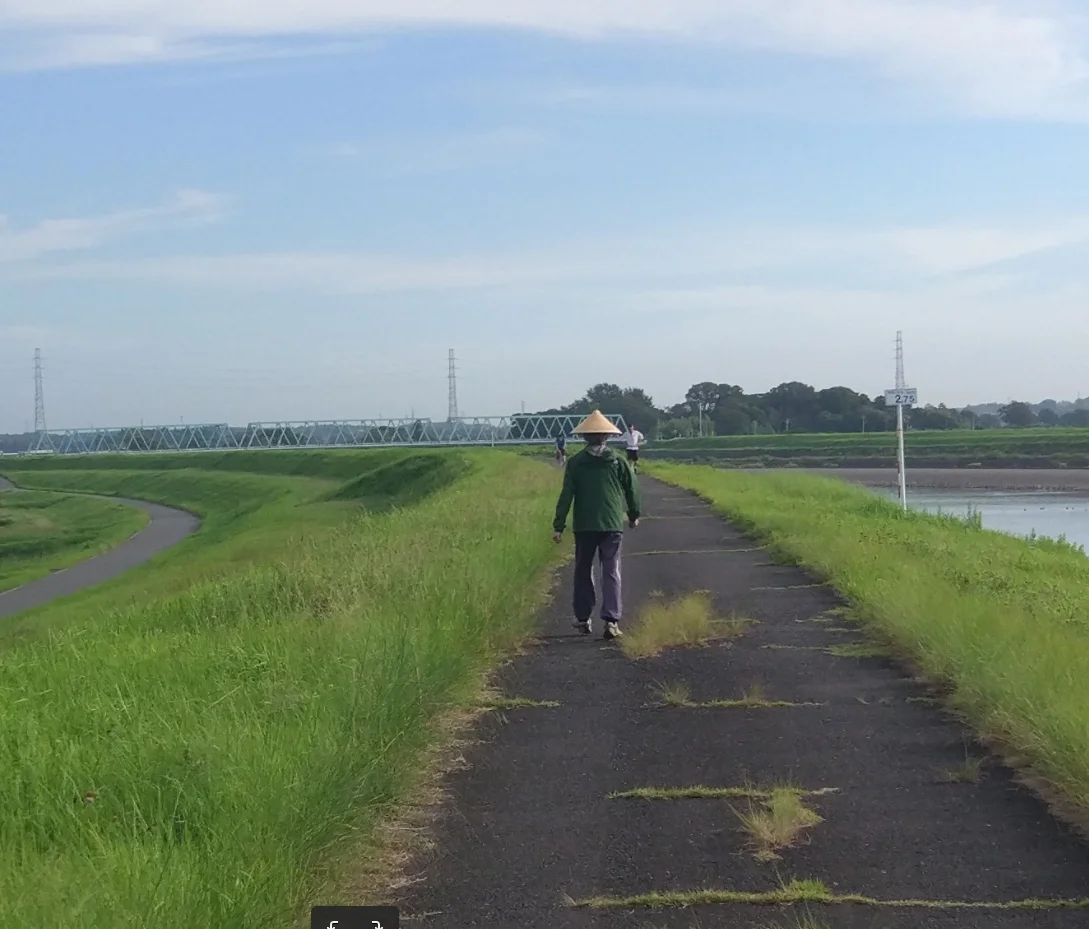 Revenons à ce matin. J’avais décidé de prendre surtout des photos de fleurs, ce coup-ci. Mais ce marcheur, avec son chapeau de paille traditionnel, comme s’il sortait de la rizière pour aller se dégourdir les jambes sur la piste cyclable, m’a fait sortir l’appareil photo.