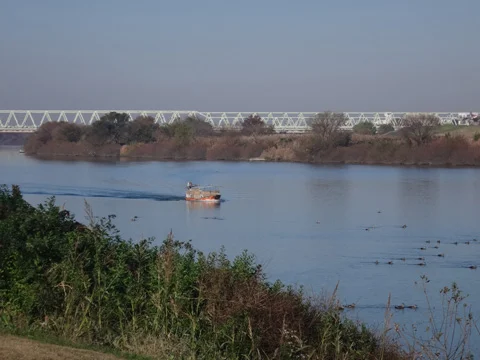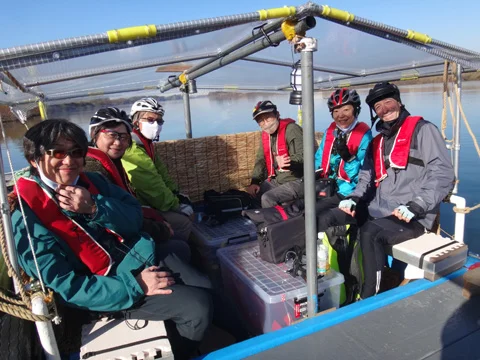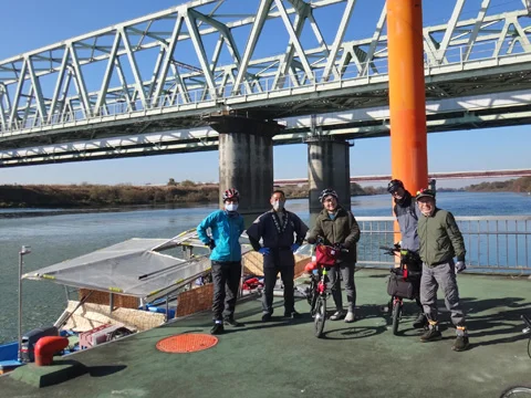 Notre itinéraire n’emprunte pas le trottoir du pont routier, mais consiste plutôt à traverser le fleuve sur un petit ferry touristique. Le fleuve Tonegawa (利根川) fait partie du groupe que l’on appelle « les trois grands » du Japon, avec le Shinanogawa (信濃川) et l’Ishikarigawa (石狩川).