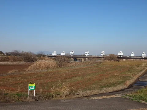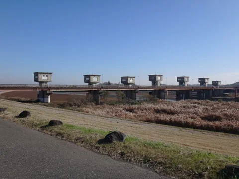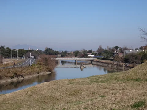 Apparaît bientôt le pont Todaibashi (戸田井橋), puis, quelques centaines de mètres plus loin, la rivière Kitauragawa (北浦川), avec, au loin, le mont Tsukuba (筑波山).