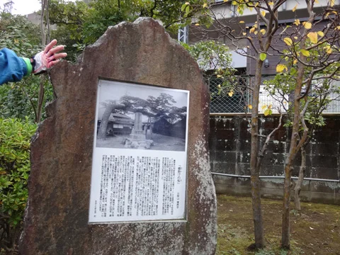 C’est dans l’enceinte de ce temple que l’on découvre l’origine du nom des dango que Sider vient tout juste d’acheter. La photo incrustée dans ce monument y explique que le célèbre Mito Kōmon aurait posé sa lance contre un pin pour faire une pause à cet endroit. Les yarikake dango de Sider sont donc des « dango de la lance appuyée contre le pin ».