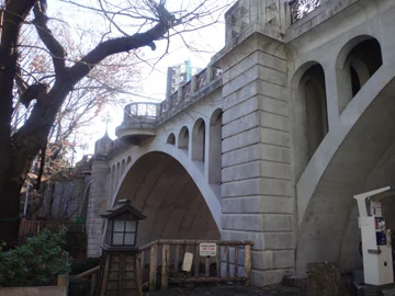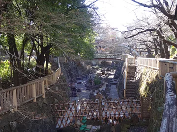 Quant au joli pont Otonashi (音無橋), il surplombe plus ou moins silencieusement, depuis le début de sa construction en 1929, le parc hydrophile et partiellement hyponyme de la rivière disparue.