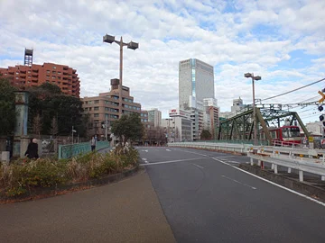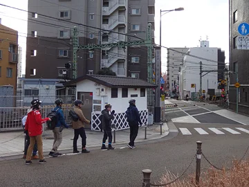 Derrière nos cyclistes, au point C, se trouve le pont Yatsuyama (八ツ山橋).