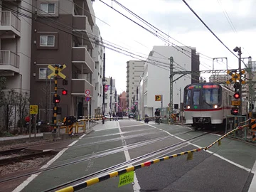 Pour vous situer, précisons qu’ils se trouvent tout juste à quelques pas du point de départ du parcours, au point A sur la carte ci-dessous. Devant eux, au sud, un passage à niveau de la ligne Keikyū. C’est dans la direction de la route qui traverse ce passage à niveau que se prolongeait autrefois, vers le sud, l’ancienne route du Tōkaidō.