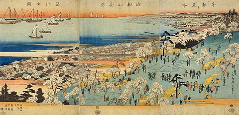 La colline du palais à Shinagawa, avril 1858, estampe 28 sur Wikipédia
