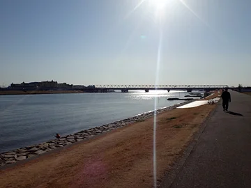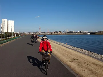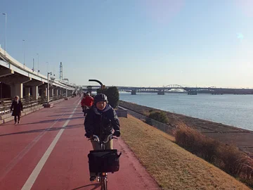 Quoi qu’il en soit, la piste cyclable s’élargit ensuite, aux environs de l’embouchure du fleuve, celui-ci se jetant dans la baie de Tokyo de l’autre côté du pont ferroviaire de la ligne Keiyō (京葉線).