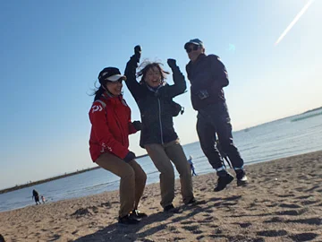 Qui sait, peut-être un jour apercevrez-vous des membres de Geo Pottering en train de faire leur saut synchronisé traditionnel sur la plage ?