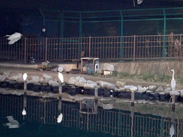 Ce jour-là, à la grande surprise du quatuor de vélos, un quatuor de hérons (trois blancs et un cendré) se prélassait sous le pont Niji-no-Ōhashi (虹の大橋, littéralement le Grand pont de l’arc-en-ciel).