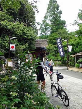 Environ 1,5 km plus au sud, le quatuor cycliste pénètre dans l’enceinte du sanctuaire Fudaten ( 布多天神社 ).