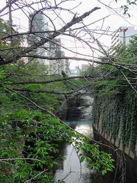 De nos jours, la vue sur la rivière Kanda depuis le pont Omokage ne donne plus que sur un lit tout à l’étroit dans son corset de béton, et sur des bâtiments élevés.