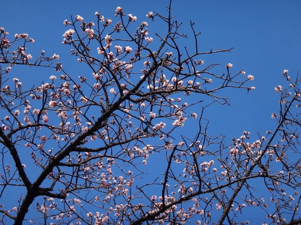 Le parc Ueno c’est aussi, pendant quelques jours du printemps, les effluves nauséabonds des flaques de bière et de saké renversé où viennent sombrer les pétales tombés des fleurs de cerisier. Heureusement, nous sommes le matin du 3 janvier 2021, l’air est pur dans le parc et ce sont des cerisiers d’hiver ( 寒桜 ) qui, sous la bise, chatouillent le ciel de leurs délicates branches en fleurs.
