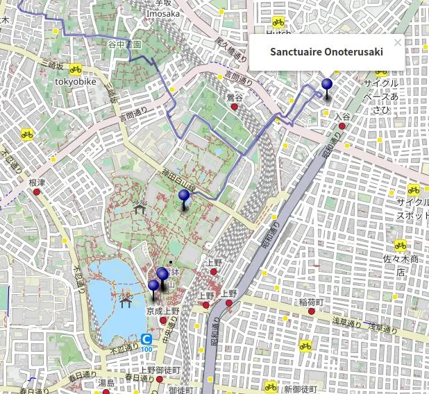 Dans ce troisième billet de la quatrième balade, nous allons d’abord rouler un peu vers le nord-est, jusqu’au sanctuaire Onoterusaki (小野照崎神社), puis repasser par le parc Ueno et poursuivre notre route vers le nord-ouest.