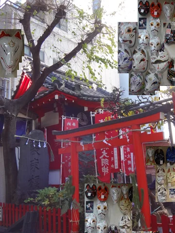 Le micocoulier sacré, le sanctuaire Shōzoku Inari et des masques de renard