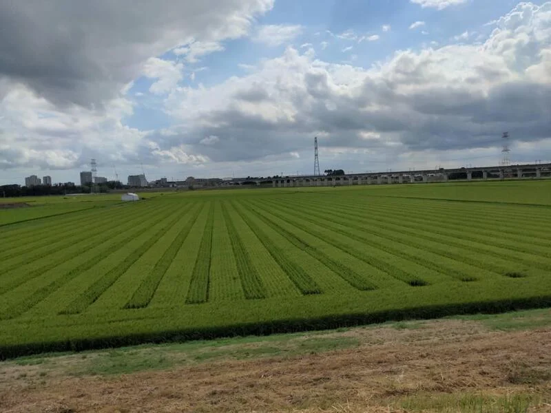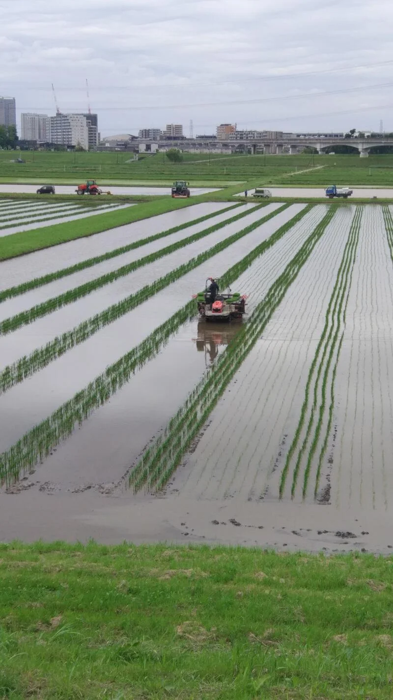 Le printemps dernier, en roulant sur la piste cyclable du fleuve Tone, j’ai aperçu une repiqueuse qui s’affairait à repiquer huit rangs de riz entre des plants précédemment repiqués sur quatre rangs. Ça m’a tellement intrigué que je suis descendu sur le bord de la rizière pour m’informer auprès d’un travailleur agricole qui marchait le long de la digue. Il m’a expliqué que les plants déjà repiqués étaient les « pères » ( 父親 ) et que ce jour-là il repiquait les mères ( 母親 ). Je me suis dit qu’il s’agissait probablement de croisements de variétés du riz, et comme il avait l’air pas mal occupé, je n’ai pas voulu le déranger davantage en plein travail et suis retourné sur la piste cyclable.