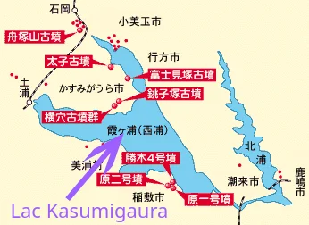 Outre les sites de kaizuka (amas ou collines de coquillages), la région compte un certain nombre de kofun (古墳, ancien tumulus ou tertres funéraires), dont celui de Funazukayama (舟塚山古墳) en forme de trou de serrure, un trou d’une longueur d’environ 200 mètres sur lequel mon bipède est allé gambader [en octobre 2023 avec Geo Pottering], avant d’aller regarder de près les 帆引き船 (voiliers de pêche) sur le lac Kasumigaura (il y a des photos de la balade et des voiliers ici).