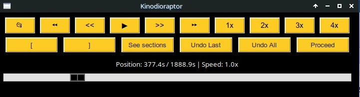 [Ouvrir le fichier] [Reculer de 5 sec] [Reculer de 1 sec] [Lecture/Pause] [Avancer de 1 sec] [Avancer de 5 sec] [Lecture 1x] [Lecture 2x] [Lecture 3x] [Lecture 4x]