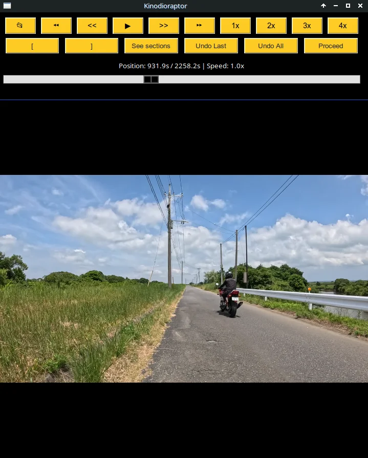 C’est un truc qui tourne principalement en Python, tout en exploitant ffmpeg et le lecteur MPV. Je l’appelle « Kinodioraptor », parce qu’il se nourrit de sons et de bruits indésirables sur les vidéos de vélo que je prépare pour Kinomap. Ce peut être, par exemple, une motocyclette qui arrive par derrière et me double sur une route de campagne, transformant pendant quelques secondes la trame sonore bucolique de la balade en une désagréable pétarade. Ce peut être aussi un commentaire tout à fait inutile de ma part, genre : « Oh, il y a un joli papillon posé sur cette clôture, là », alors que sur la vidéo, filmée en mode Wide sur la GoPro, on ne distingue pas vraiment la clôture, sans parler du papillon… Autre cas de figure, ce peut être encore, quand je roule près de l’Aéroport International de Narita, un avion intercontinental qui fend le ciel et pourfend le silence juste au-dessus de moi.