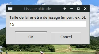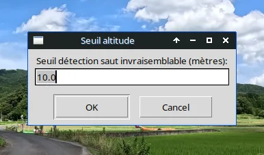 puis une fenêtre pour spécifier un seuil de détection des changements soudains d’altitude invraisemblables (quand le GPS hallucine).