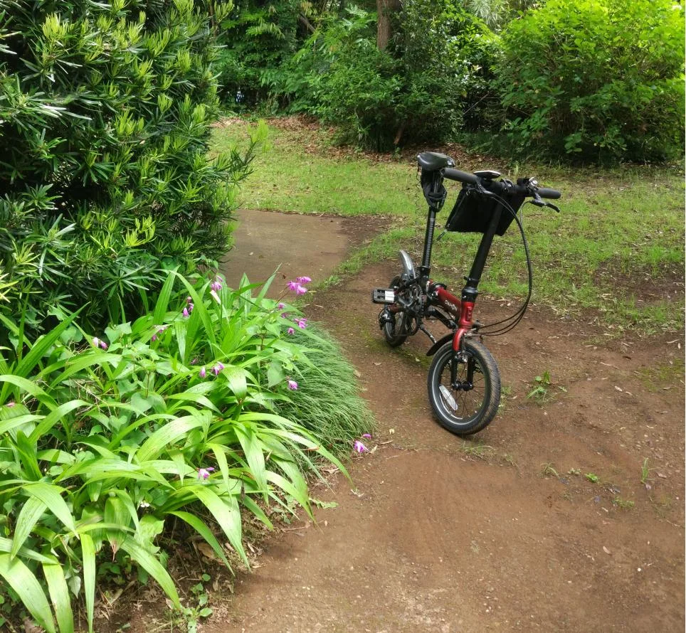 Près du pont Benten (弁天橋), la piste s’enfonçait sous un couvert, tandis qu’une jolie borne indiquait qu’il nous restait encore 12,8 km de petit bonheur avant d’atteindre le bout de la piste.