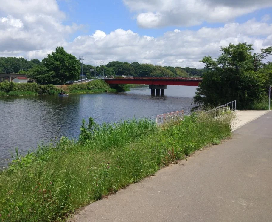 À 11 h 00, nous sommes arrivés au lac Inba-numa (印旛沼), où commence la piste cyclable de la rivière Hanamigawa (花見川), dont le cours descend vers le sud jusqu’à la baie de Tokyo.