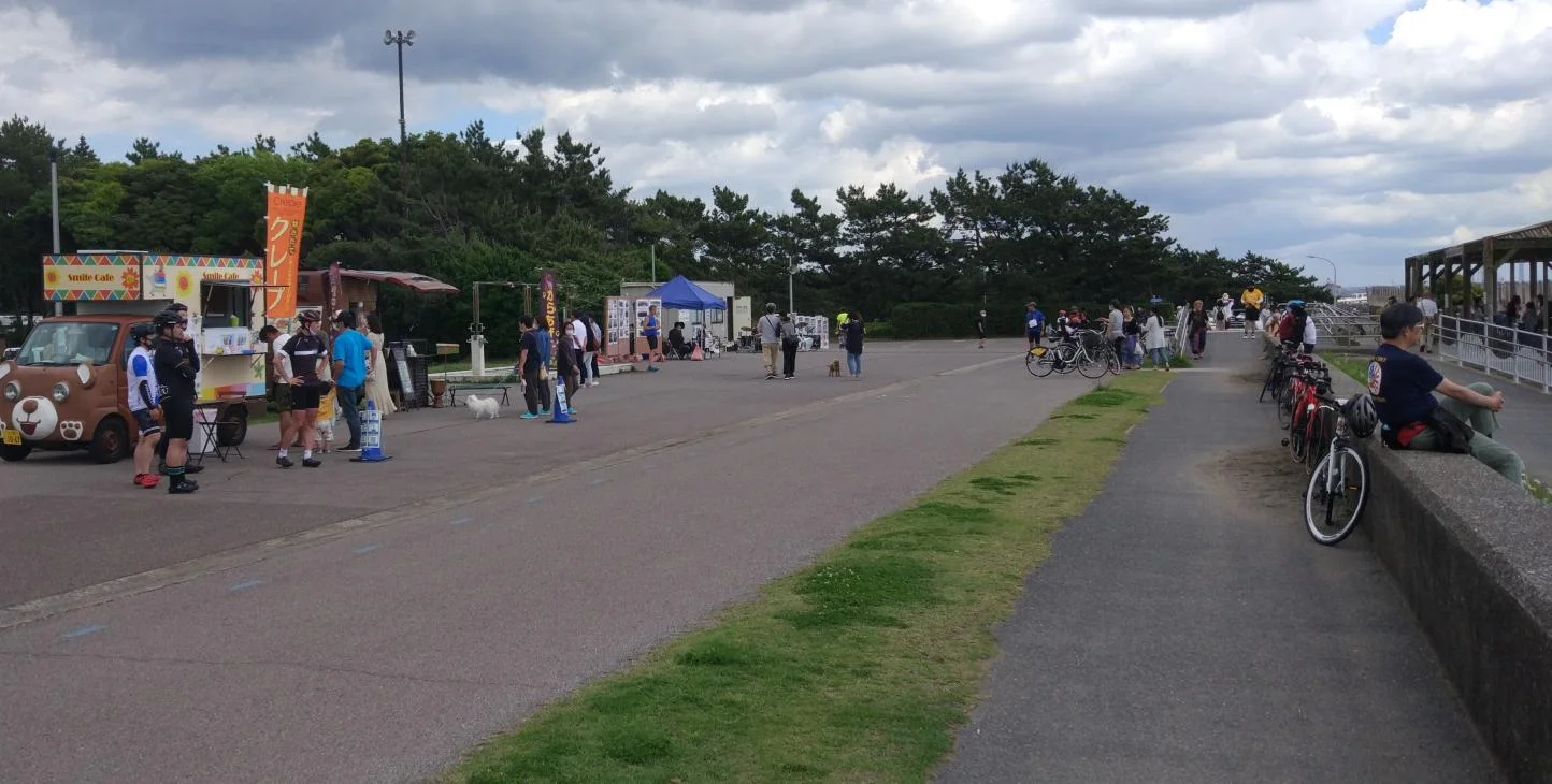 Il y a trois plages dans ce coin de la baie : Makuhari (幕張の浜), Kemigawa (検見川の浜) et Inage (いなげの浜). À vélo, on peut facilement se déplacer de l’une à l’autre en quelques dizaines de minutes, voire moins.