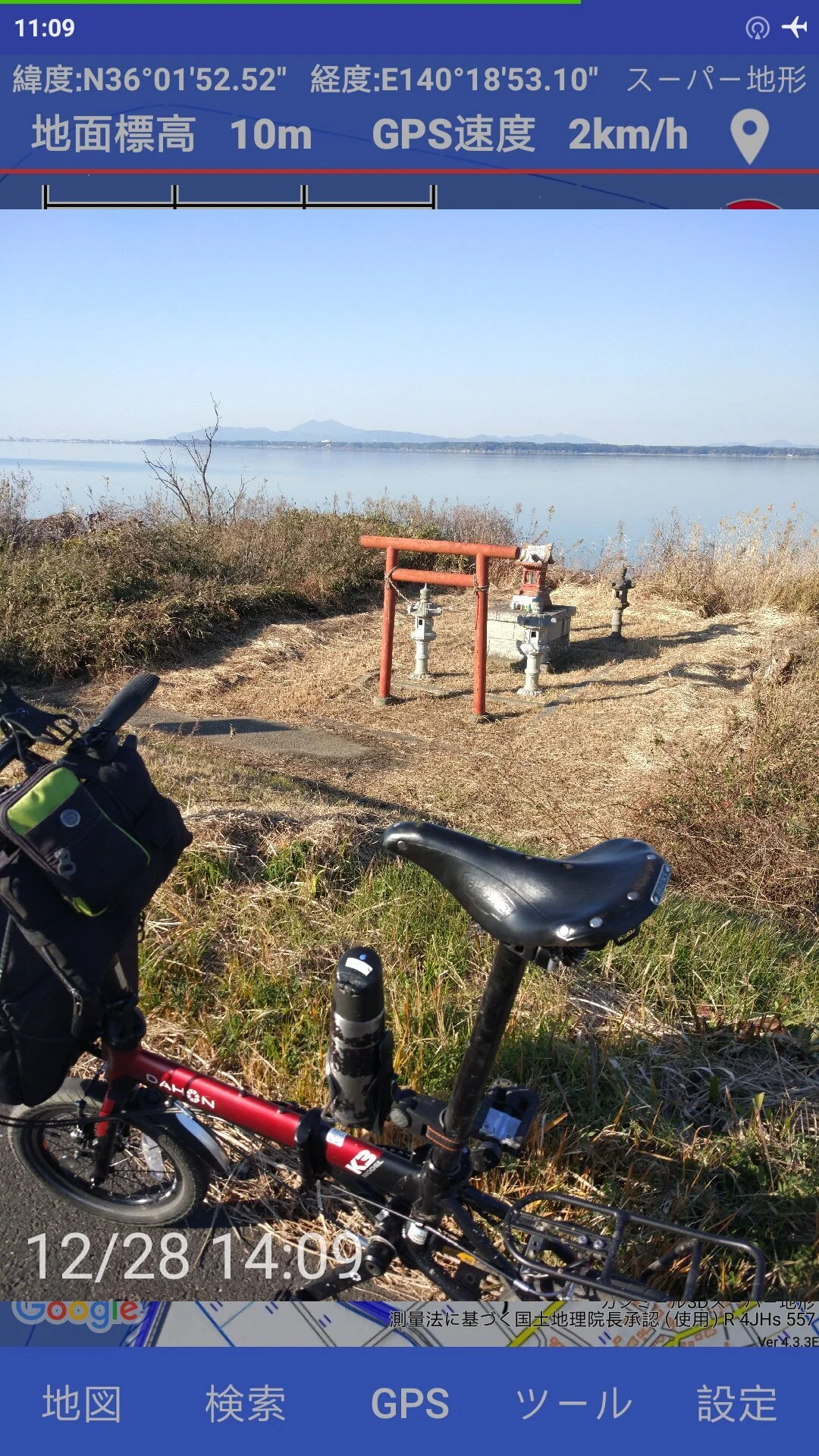De notre côté, nous avons choisi de partir plutôt de la maison, dans la préfecture de Chiba, et de rouler vers l’est jusqu’au lac, sur des routes secondaires, puis, une fois au lac, de poursuivre sur la piste cyclable jusqu’à la gare de Tsuchiura. Ça nous faisait un parcours d’environ 87 km, sous un ciel bleu et des vents très peu agressifs, presque caressants.