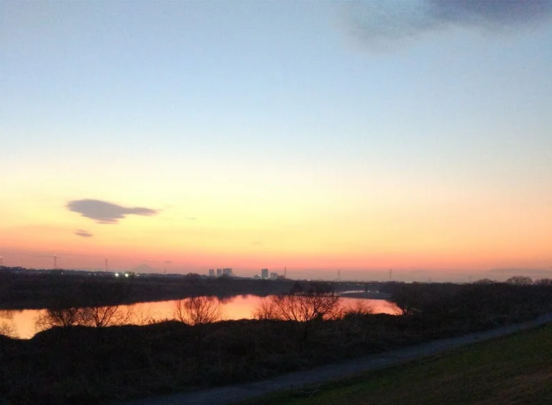 Après avoir roulé ces 87 km jusqu’à la gare de Tsuchiura (土浦駅), nous avons pris le train jusqu’à celle de Toride (取手駅) plutôt que de nous rendre directement à celle de notre quartier, histoire de profiter encore un peu du beau temps et des coloris du ciel pendant 17 km supplémentaires.