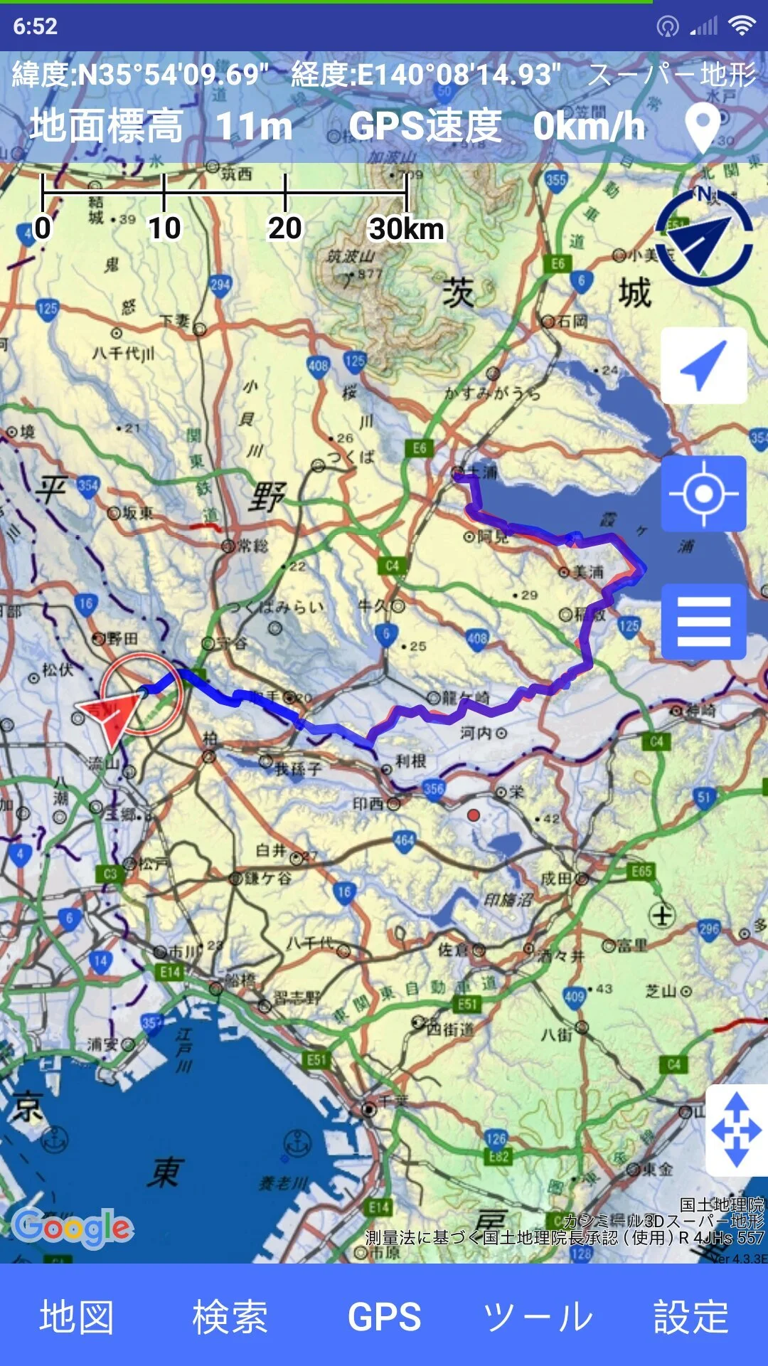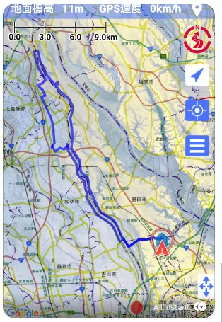 Notre parcours sur l’application スーパー地形 (Supā Chikei ou, en français, Super Topo[graphie]).