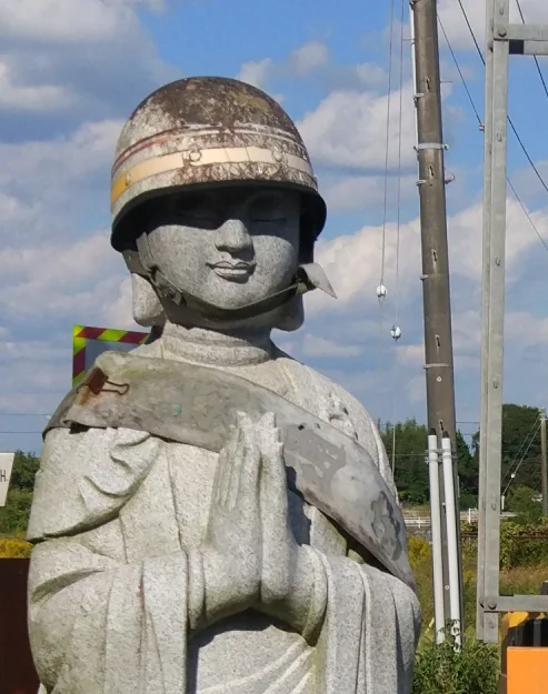 Ben dis donc, elle en sait des choses, la statue ! T’es sûr que tu n’inventes rien, là ? Une statue bouddhique au beau milieu de la campagne japonaise… qui parle latin !