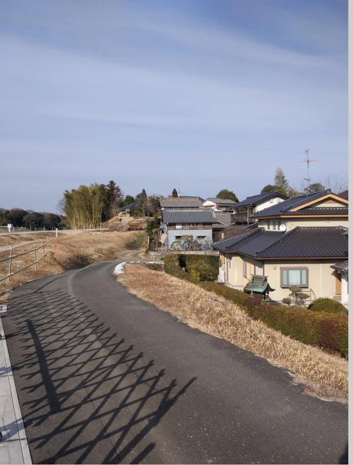Nous croyions bien avoir retrouvé le cours de la Kinugawa au bout de quelques minutes à peine de ce petit bonheur rural, mais des travaux de la voirie y bloquaient l’accès à tous les véhicules, vélos y compris, aussi a-t-il fallu emprunter la courbe qui replongeait dans la ruralité de février.
