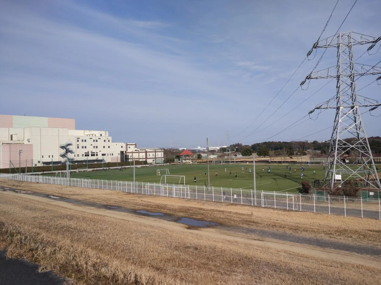 Après avoir quitté le fleuve Tonegawa pour longer la rivière Kinugawa (鬼怒川), et juste un peu avant d’arriver au premier cercle (celui le plus à droite sur la carte), nous sommes tombés sur un match de soccer (de foot pour mes lecteurs dijonnais), sinon électrisant, du moins très bien électrifié.