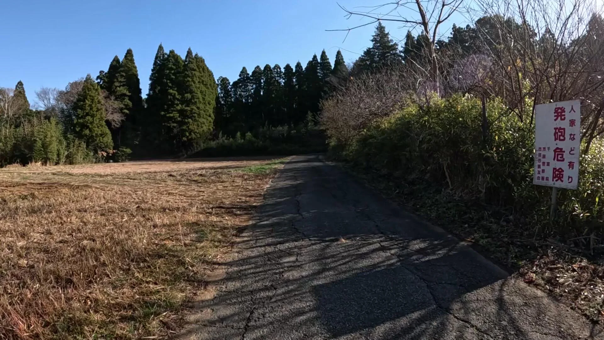 Ici, l’affiche nous demande de ne pas tirer de coups de feu, parce qu’il y a des maisons tout près et que c’est dangereux ( 発砲危険 ).
