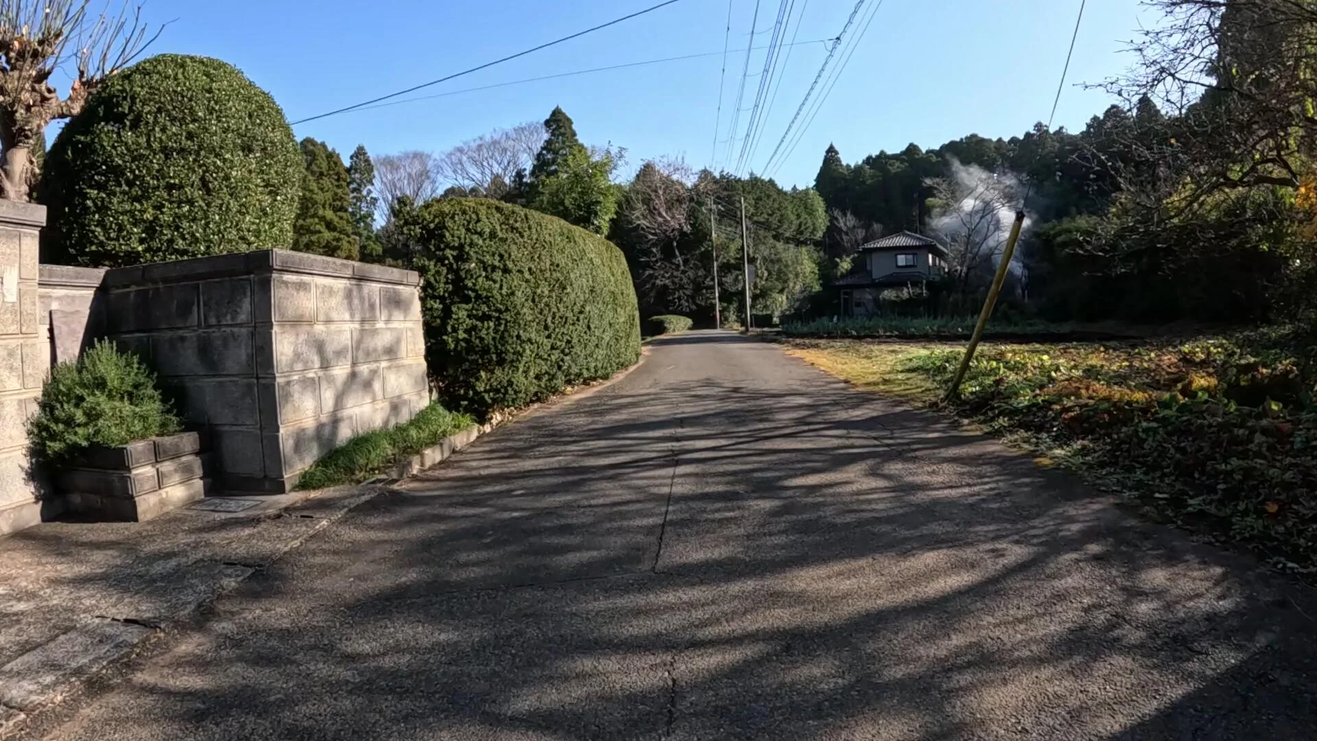 Dans les derniers kilomètres de ce premier tronçon de la balade, un paysan faisait brûler des feuilles mortes au loin…