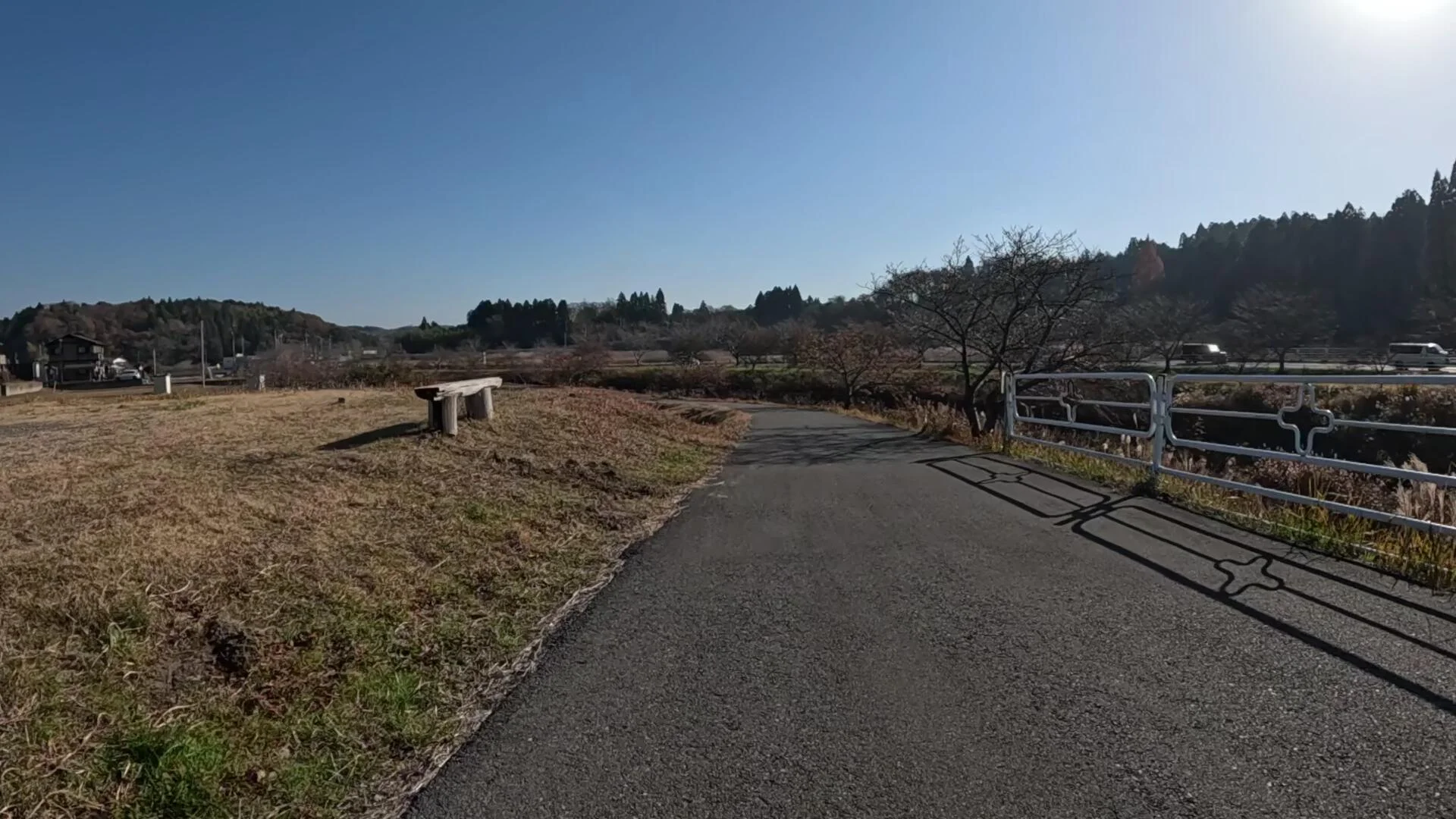 Hier, nous sommes allés vers le sud de notre préfecture (Chiba), pour une balade d’environ 60 km à travers les rizières de décembre aux reflets dorés. Ça a donné quatre vidéos à peu près sans arrêts (feux de circulation et intersections), pour la simple et bonne raison que nous roulions principalement dans d’étroits chemins empruntés par les tracteurs des paysans pendant la saison agricole. Avec pour résultat que le parcours s’est déroulé sans heurts, presque du début à la fin, sur des routes désertes (et charmantes). De ces 60 km, filmés du début à la fin, nous en avons retenus 40, divisés en quatre sections.