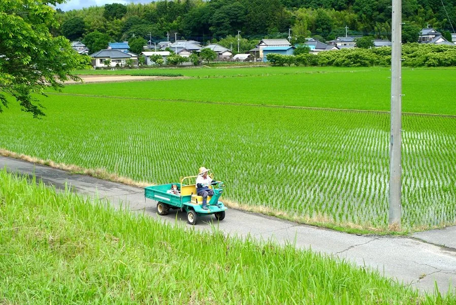 Mais ma photo préférée, ce jour-là, fut celle d’une paysanne sur son petit véhicule le long de la rizière. Rouler à vélo dans ce vert-là, chaque été, se traduit par des poussées de dopamine, de sérotonine et d’endorphines à faire craquer l’appareil photo.