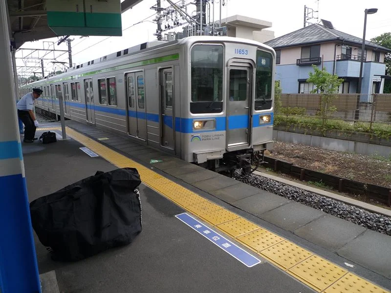 C’est par ailleurs cette fois-là que j’ai fait ma première expérience de rinkō (輪行) en prenant le train avec le vélo. Dahon et son cavalier, follement fiers de cette grande première, l’avaient immortalisée sur le quai de la gare de départ.