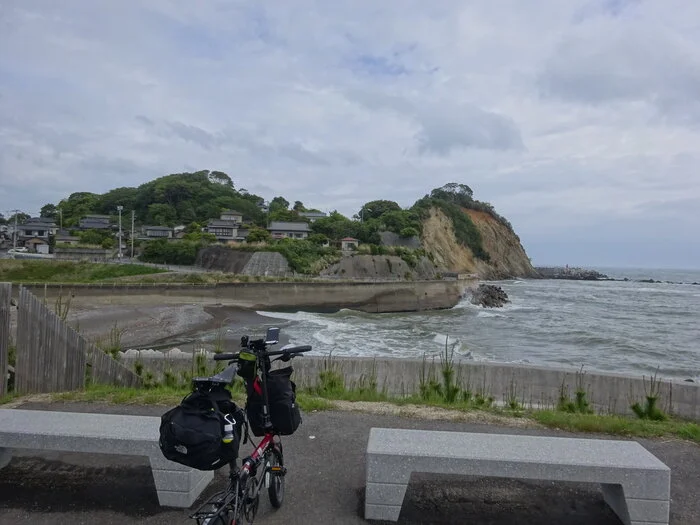 De la gare, et sous un ciel nuageux, nous nous dirigeons sans plus tarder vers l’océan Pacifique et le cap Tonogamisaki (殿上崎), en direction du nord-est.