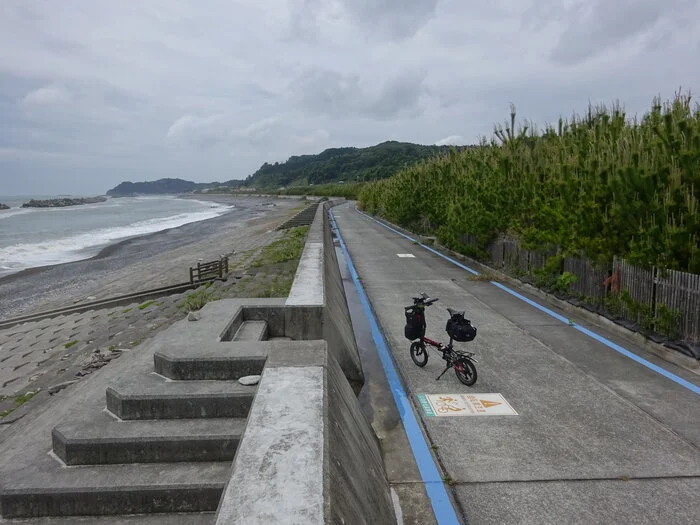 Le trajet longe ensuite la côte sur la piste cyclable Iwaki Nanahama Kaidō (いわき七浜街道), piste qui mène au Parc de la barrière de Nakoso (勿来の関), 52 km plus au sud.