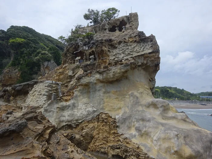 Au sommet de ce rocher poreux, à même le roc, se trouve le petit sanctuaire ( 祠 ) de l’îlet.
