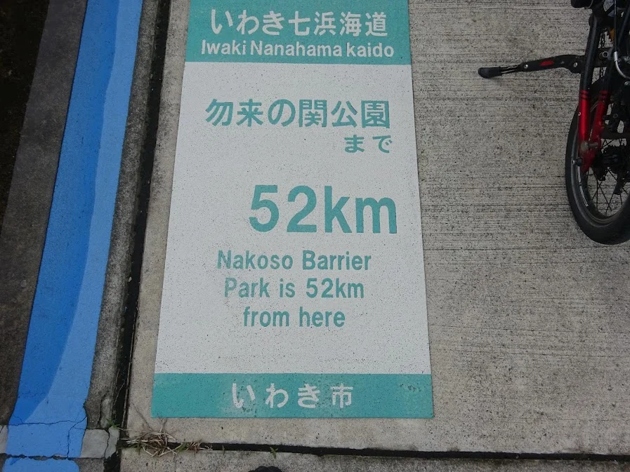 Le trajet longe ensuite la côte sur la piste cyclable Iwaki Nanahama Kaidō (いわき七浜街道), piste qui mène au Parc de la barrière de Nakoso (勿来の関), 52 km plus au sud.