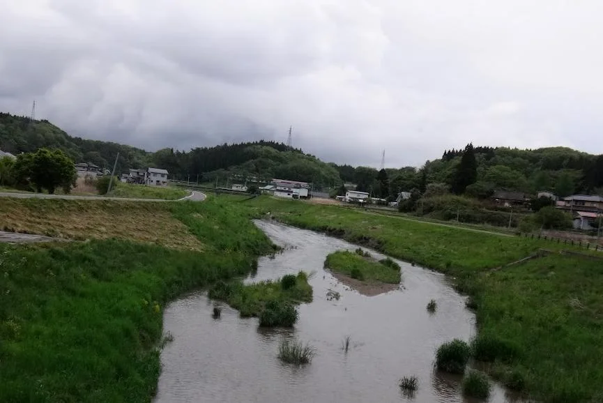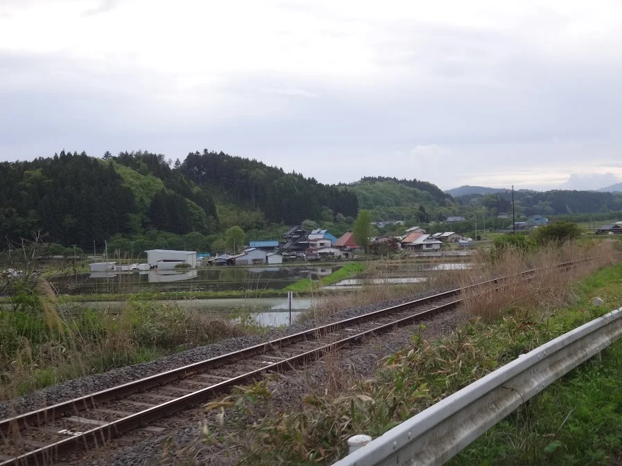 Jusqu’ici, nous avons roulé à travers les hameaux de la ville d’Iwaki. En arrivant au gros hameau de Natsui (夏井), nous nous trouvons dorénavant dans le bourg d’Ono-machi (小野町, un peu moins de 9 000 habitants). À partir d’ici, nous entrons dans une zone de terrain plat.