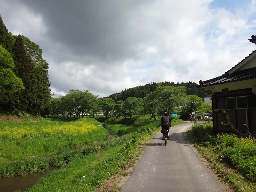 De là nous pourrions, comme la journée précédente, longer la voie ferrée de la ligne Ban’etsutō, cette fois-ci du bourg d’Ononii-machi à Miharu (三春), mais le trajet préparé par Geo Pottering passe plutôt en ligne droite, pour faire plus court, jusqu’au lac Sakura ( さくら湖 ).