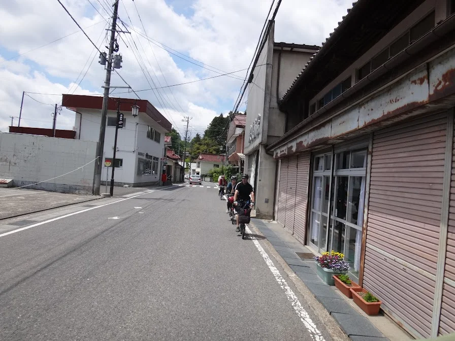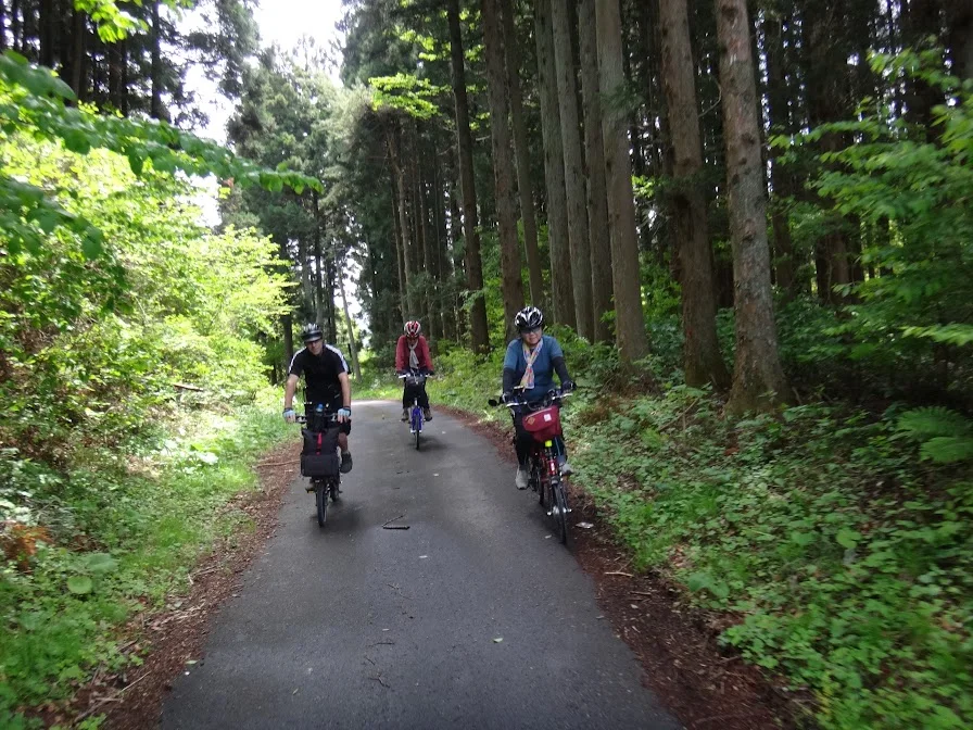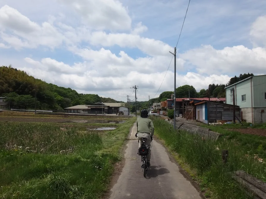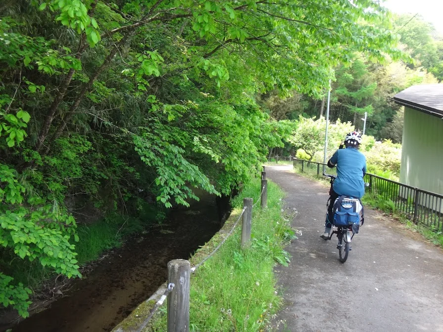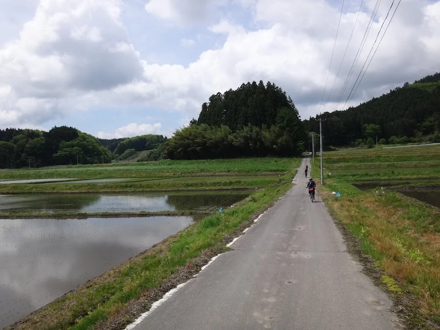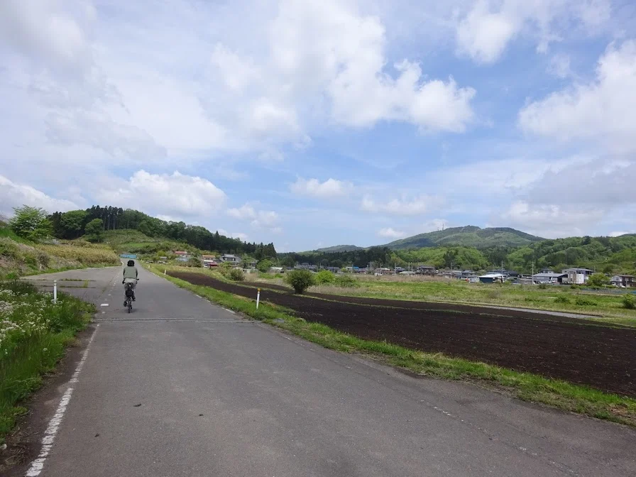 Plutôt que de rouler sur la route 65, principale voie de transport entre Ono et la ville de Kōriyama (郡山市), nous empruntons une route secondaire confortable sous les roues et par laquelle passent très peu de voitures (sans parler des vélos !). Cette route contourne le mont Hikageyama (日影山) en prenant la direction nord-ouest.
