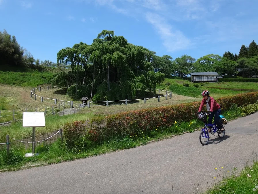 Nous avions initialement prévu de couper à travers le lac plus à l’ouest, via le grand pont de la 144, mais nos hôtes de l’auberge de la veille nous ayant vivement encouragés à aller contempler cet arbre millénaire même si sa floraison était terminée, nous avons contourné le lac par la droite pour passer devant ce célèbre cerisier pleureur.