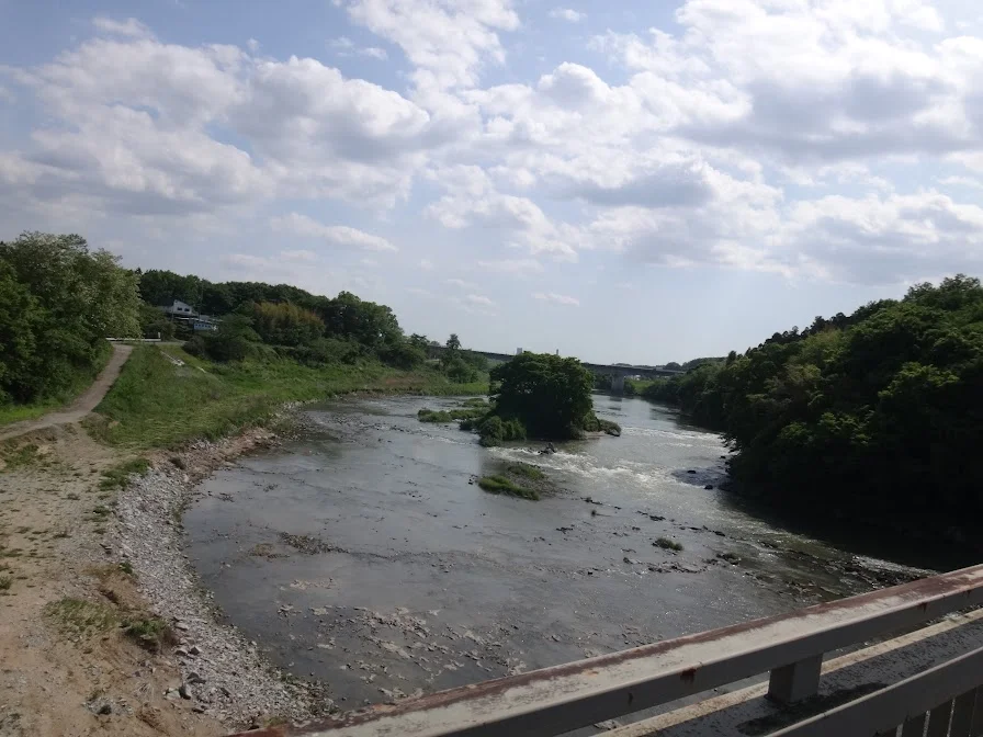 Vue sur l’amont de la rivière Abukuma-gawa (阿武隈川) depuis le pont Kowadaki