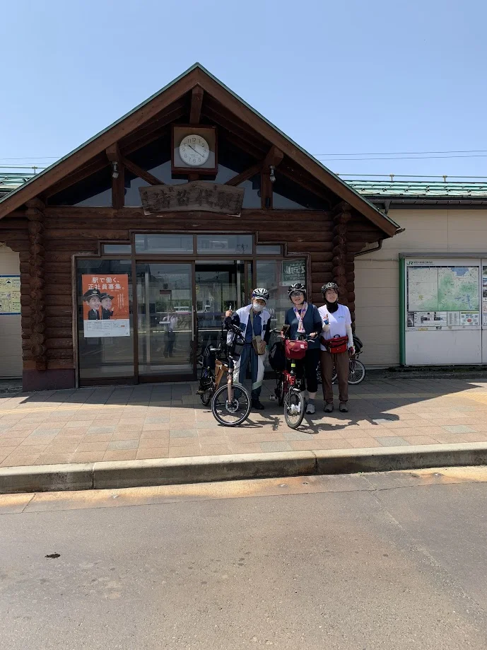 Shirosukī, Reina et Benedetta et leurs trois vélos, prêts pour le départ