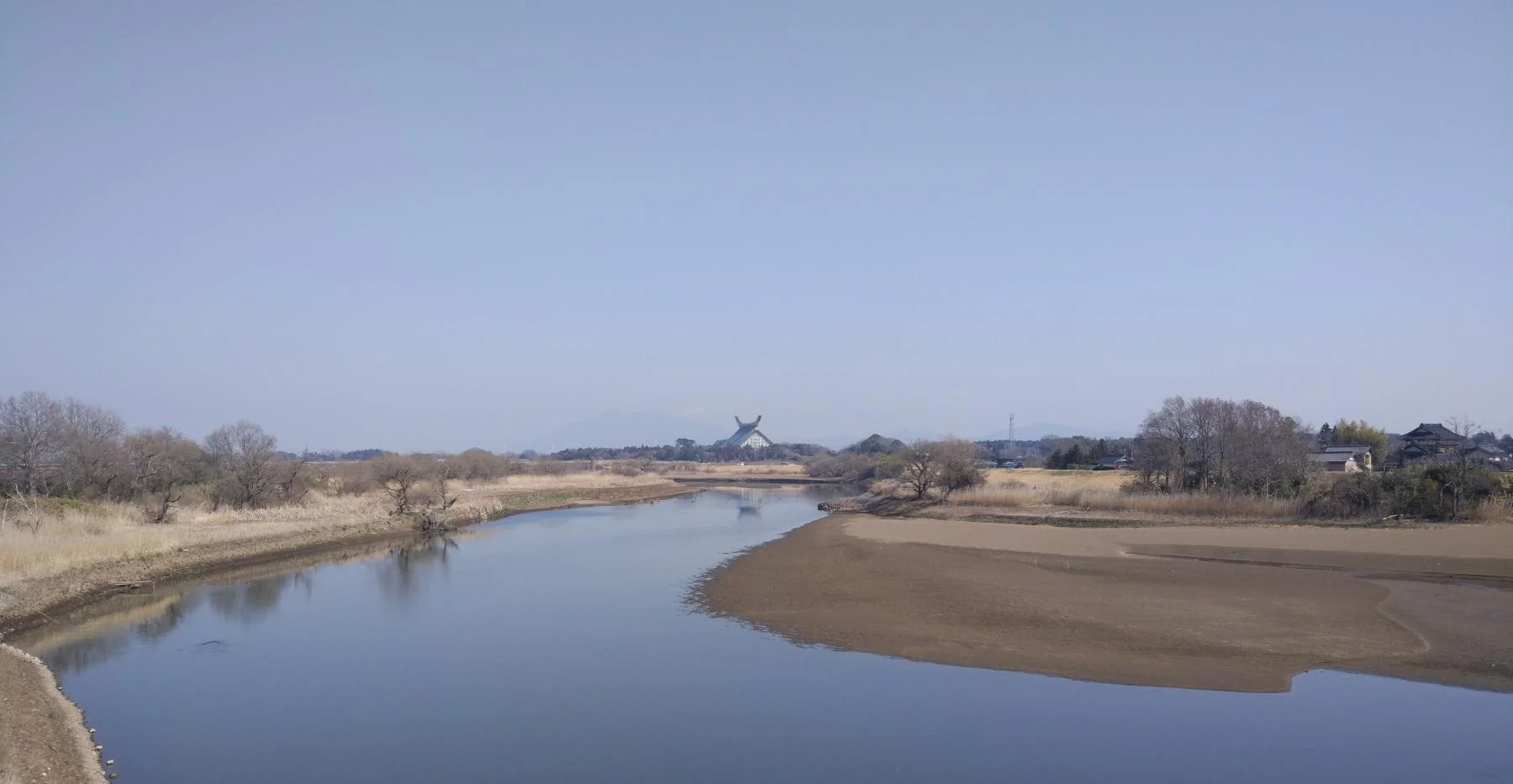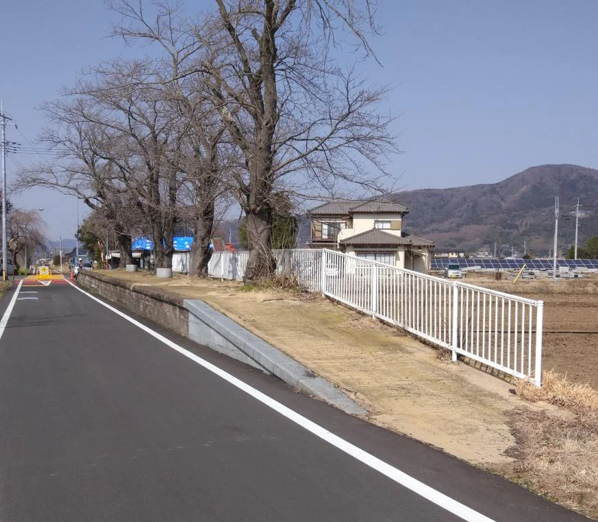 C’était la première fois que nous faisions ce trajet en roulant vers le nord, ce qui nous a réservé une belle surprise, peu après avoir traversé le grand pont Mefuki (芽吹大橋) et pénétré dans la ville de Bandō (坂東市).