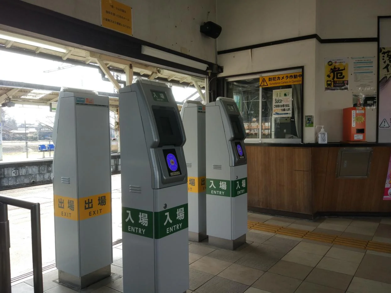 Pas d’employé en permanence, et pas de portillon d’accès. La surveillance est confiée à une caméra. Les bornes électroniques acceptent les cartes à puce PASMO des voyageurs entrants et sortants. L’après-midi, du lundi au dimanche, il n’y a qu’un train toutes les 60 minutes. La patience est de rigueur.